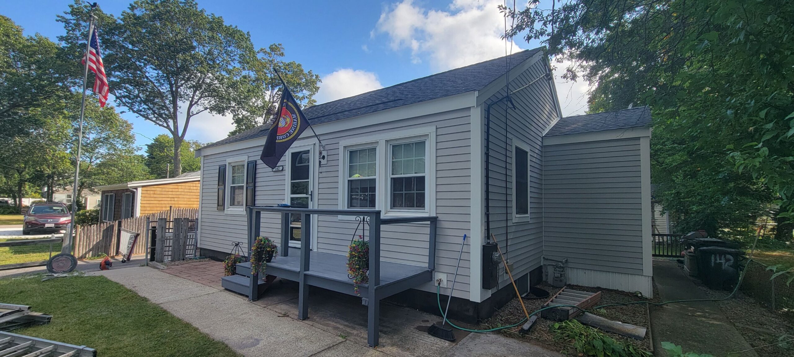 Coastal Windows & Exteriors completed a stunning exterior transformation for a Pembroke home with a James Hardie installer in Pembroke upgrade. This South Shore homeowner was dealing with old siding that was worn, dated, and no longer protecting their home. They wanted a fresh, modern look that would stand up to coastal New England weather without constant maintenance. The recent addition on the back of the house needed to blend seamlessly with the original structure.